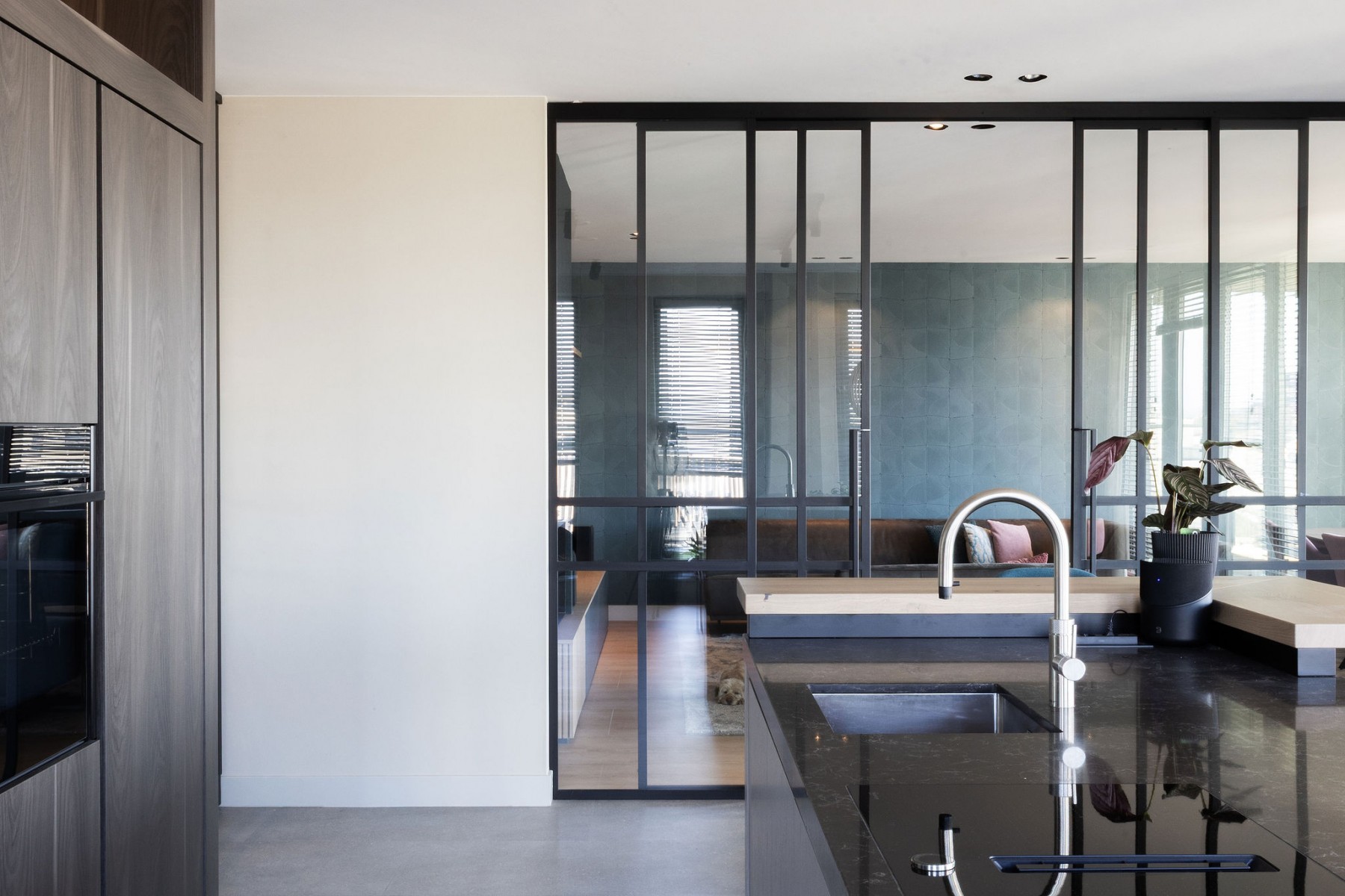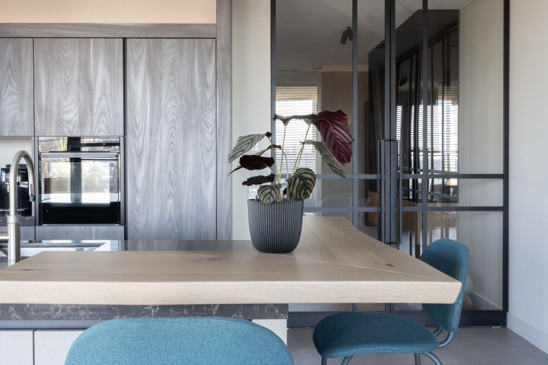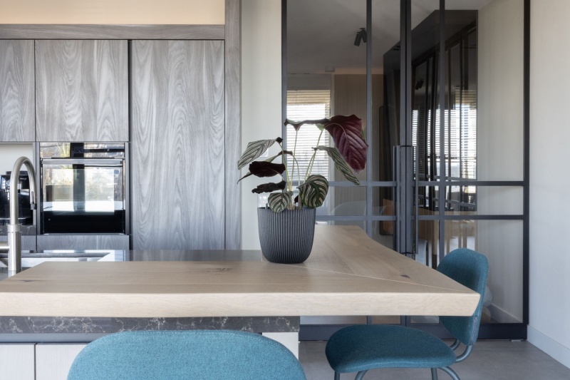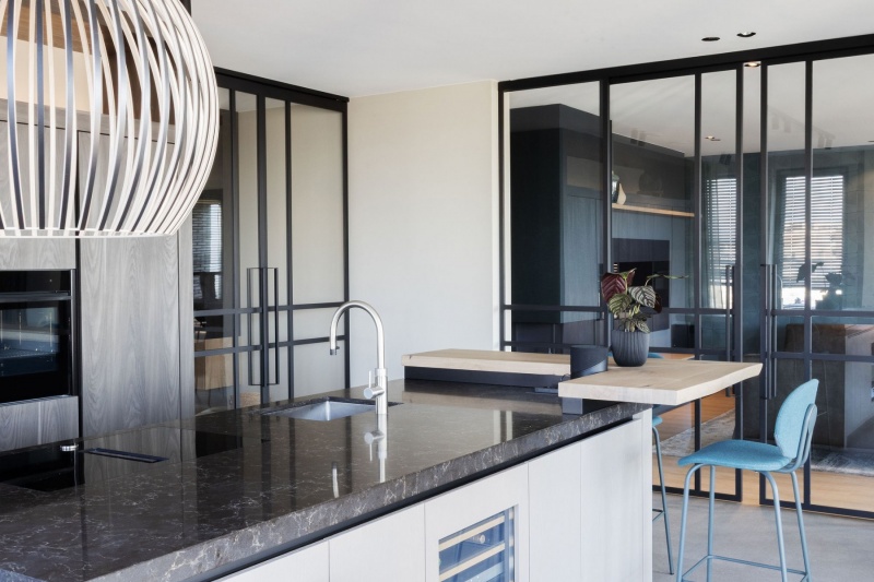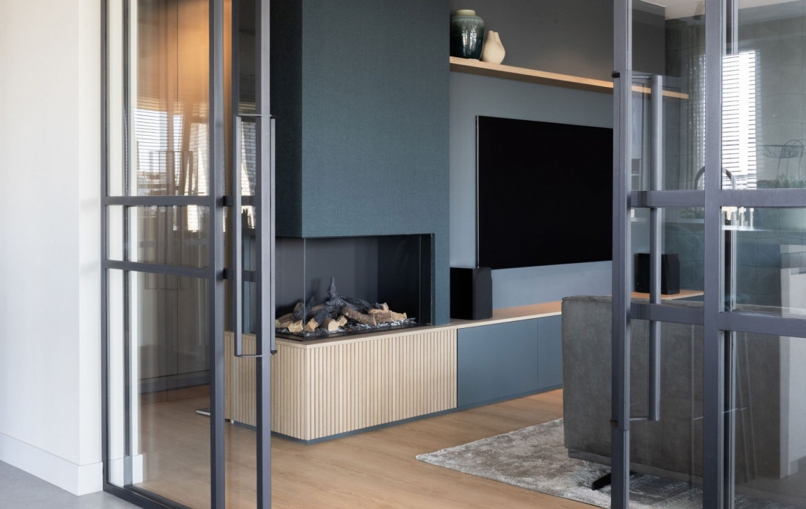 Binnen het project veel maatwerk: meubelen, mooie stalen kozijnen/deuren, de keuken, badkamer, slaapkamerkasten, etc. Daarnaast zijn alle meubelen en stoffering in overleg met de bewoners, passend binnen het concept geshopt. Een mooi proces met als resultaat een stijl welke perfect aansluit bij de bewoners.